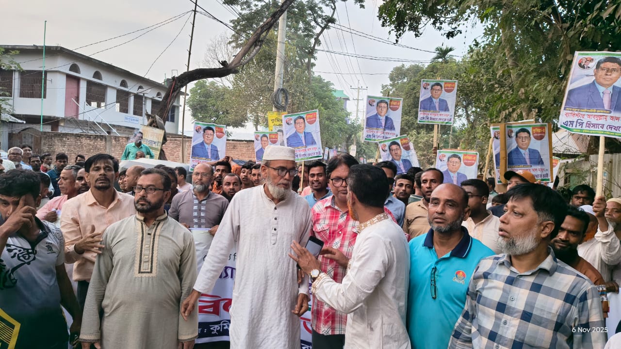 কুমিল্লা-৫ (বুড়িচং-ব্রাহ্মণপাড়া) আসনে বিএনপি’র দলীয় মনোনয়ন না পেয়ে ক্ষোভ প্রকাশ করেছেন প্রধান উপদেষ্টা ড. ইউনুসের আইনজীবী ও বাংলাদেশ বার কাউন্সিলের লিগ্যাল এডুকেশন কমিটির চেয়ারম্যান ব্যারিস্টার আব্দুল্লাহ আল মামুনের সমর্থকরা। বৃহস্পতিবার (৬ নভেম্বর) বিকেলে ব্রাহ্মণপাড়ার টাটেরা এলাকায় কুমিল্লা-মীরপুর সড়কে ব্যানার-ফেস্টুন নিয়ে বিক্ষোভ মিছিল বের করেন তারা। এসময় ‘অবৈধ মনোনয়ন মানি না, মানবো না’— এ স্লোগান দিয়ে সড়ক অবরোধ করে ঘন্টাব্যাপী বিক্ষোভ করেন ক্ষুব্ধ নেতাকর্মীরা। বিক্ষোভকারীরা কুমিল্লা-৫ আসনের ঘোষিত মনোনয়ন বাতিল করে ব্যারিস্টার আব্দুল্লাহ আল মামুনকে দলীয় প্রার্থী হিসেবে পুনর্নাম ঘোষণার দাবি জানান। বিক্ষোভের কারণে সড়কে দীর্ঘ যানজটের সৃষ্টি হয়।