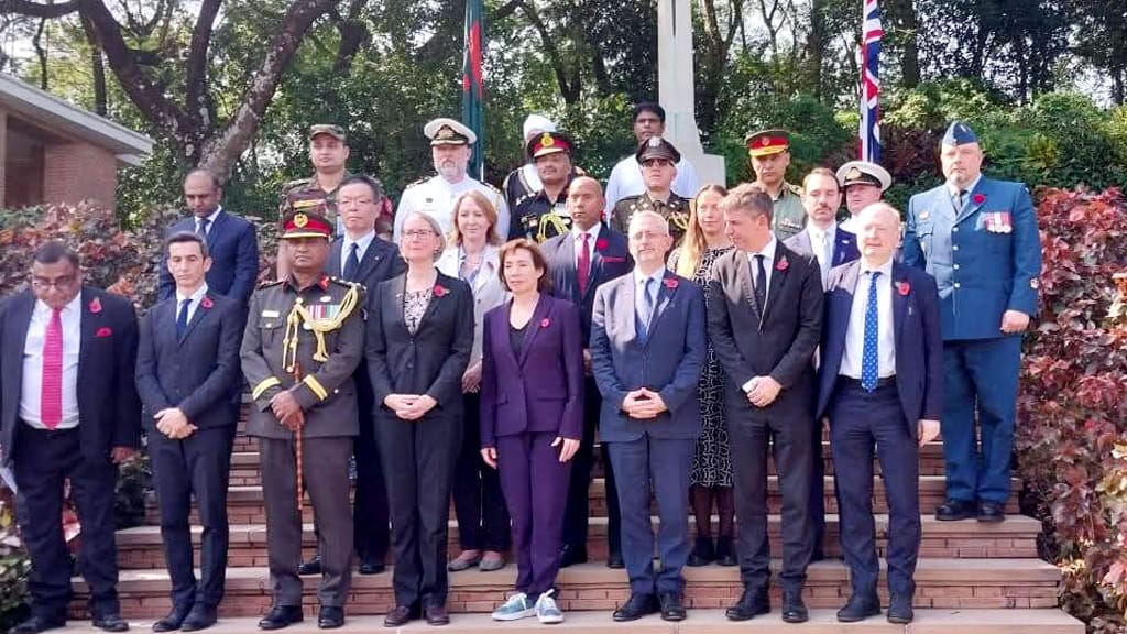কুমিল্লার সেনানিবাসের উত্তর প্রান্তে বুড়িচং উপজেলায় অবস্থিত ময়নামতি কমনওয়েলথ ওয়ার সিমেট্রিতে দ্বিতীয় বিশ্বযুদ্ধে নিহত সেনাদের স্মরণে পুষ্পস্তবক অর্পণ ও স্মরণানুষ্ঠান অনুষ্ঠিত হয়েছে। শনিবার আয়োজিত এ অনুষ্ঠানে যুক্তরাজ্যের হাইকমিশনারসহ ৮টি দেশের রাষ্ট্রদূত, কূটনীতিক ও আন্তর্জাতিক সংস্থার প্রতিনিধিরা উপস্থিত ছিলেন। ময়নামতি ওয়ার সিমেট্রির বাংলাদেশ কান্ট্রি অ্যাডমিনিস্ট্রেটর আব্দুর রহিম সবুজ জানান, স্মরণানুষ্ঠানে অংশ নিয়ে সবাই দ্বিতীয় বিশ্বযুদ্ধে আত্মোৎসর্গকারী সেনাদের প্রতি গভীর শ্রদ্ধা নিবেদন করেন। প্রায় চার একর জায়গাজুড়ে বিস্তৃত এই সমাধিক্ষেত্রে সবুজ ঘাসে মোড়া জমিন, সুসজ্জিত গাছপালা ও পরিচ্ছন্ন সমাধিফলক দর্শনার্থীদের মনে এক গভীর ছাপ ফেলে। এখানে ১৯৪১ থেকে ১৯৪৫ সালের মধ্যে দ্বিতীয় বিশ্বযুদ্ধে নিহত সেনাদের সমাধি রয়েছে। সমাধিক্ষেত্রে যুক্তরাজ্যের ৩৫৭, কানাডার ১২, অস্ট্রেলিয়ার ১২, নিউজিল্যান্ডের ৪, অবিভক্ত ভারতের ১৭১, রোডেশিয়ার ৩, পূর্ব আফ্রিকার ৫৬ ও পশ্চিম আফ্রিকার ৮৬ জন সেনা সমাহিত আছেন। প্রথমে মোট ৭৩৭ সেনার দেহ সমাহিত করা হয়েছিল; পরবর্তীতে জাপানের ২৪ সেনার দেহাবশেষ স্বদেশে ফেরানো হলে বর্তমানে এখানে ৭১৩ সেনা চিরনিদ্রায় শায়িত আছেন। স্মরণানুষ্ঠানে ব্রিটিশ হাইকমিশনার সারা কুকসহ বিভিন্ন দেশের কূটনীতিক, রাষ্ট্রদূত ও প্রতিনিধিরা পুষ্পস্তবক অর্পণ করেন। উপস্থিত ছিলেন ব্রিগেডিয়ার জেনারেল মো. মেহেদী হাসান চৌধুরী পিএসসি, কমান্ডার ১০১ পদাতিক ব্রিগেড। অনুষ্ঠানে আরও উপস্থিত ছিলেন পাকিস্তানের পলিটিক্যাল কাউন্সিলর সাইয়েদ আহমেদ মারুফ, ভারতের ডিফেন্স অ্যাডভাইজর ব্রিগেডিয়ার এম এস সাবরওয়াল, অস্ট্রেলিয়ার কূটনীতিক নার্দিয়া সিম্পসন, কানাডার প্রতিনিধি মার্কাস ডেভিস, জাপানের রাষ্ট্রদূত ইওয়ামা কিমিনোরি, ইতালির রাষ্ট্রদূত অ্যান্টোনিও আলেসান্দ্রো, স্পেনের রাষ্ট্রদূত গ্যাব্রিয়েল সিস্টিয়াগা, নরওয়ের রাষ্ট্রদূত হাকন আরাল্ড গুলব্রান্ডসে, ইউরোপীয় ইউনিয়নের প্রতিনিধি মাইকেল মিলার, যুক্তরাষ্ট্রের প্রতিনিধি মেগান বোল্ডিন, ডেনমার্কের প্রতিনিধি অ্যান্ডারস বি. কার্লসন এবং ব্রিটিশ কাউন্সিলের স্টিফেন ফোর্বস। এ ছাড়া উপস্থিত ছিলেন ডেপুটি কমান্ডার ১০১ পদাতিক ব্রিগেড, ৬ ক্যাভালরি ও ৩৩ মিলিটারি পুলিশের অধিনায়কসহ অন্যান্য ঊর্ধ্বতন সামরিক কর্মকর্তা, নিহত সৈনিকদের পরিবার ও বংশধররা। সব মিলিয়ে মোট ১৮৪ জন অংশগ্রহণ করেন এই স্মরণানুষ্ঠানে। শনিবার সকাল ১০টায় জাতীয় পতাকা অর্ধনমিতকরণের মাধ্যমে অনুষ্ঠান শুরু হয়। এরপর স্মরণ সংগীত পরিবেশনা, দুই মিনিট নীরবতা পালন, পুষ্পস্তবক অর্পণ ও প্রার্থনা শেষে 