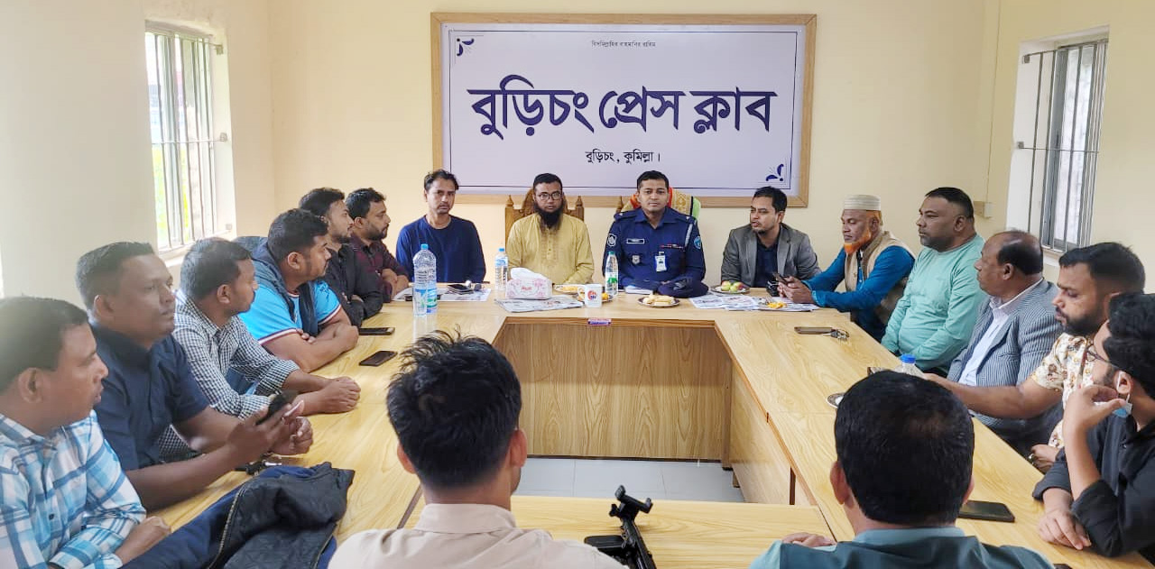 কুমিল্লার বুড়িচং থানার নবাগত ভারপ্রাপ্ত কর্মকর্তা (ওসি) শাহিনুল ইসলামের সাথে বুড়িচং প্রেসক্লাবের সদস্যদের মতবিনিময় সভা অনুষ্ঠিত হয়েছে।মঙ্গলবারে বুড়িচং প্রেসক্লাব মিলনায়তনে এ সভার আয়োজন করা হয়। সভায় সভাপতিত্ব করেন বুড়িচং প্রেসক্লাবের সভাপতি কাজী খোরশেদ আলম। সাধারণ সম্পাদক জহিরুল হক বাবুর সঞ্চালনায় মতবিনিময় সভায় বক্তব্য রাখেন বুড়িচং প্রেস ক্লাবের উপদেষ্টা আবু মুসা, সিনিয়র সহ-সভাপতি জাহাঙ্গীর আলম জাবির, যুগ্ম সাধারণ সম্পাদক মারুফ আহমেদ কল্প, সাংগঠনিক সম্পাদক জাকির হোসেন, দপ্তর সম্পাদক মো. সাফি, সাহিত্য সম্পাদক আলমগীর হোসেন বাচ্চু, আপ্যায়ন সম্পাদক ফয়েজ আহাম্মদ, তথ্য ও প্রযুক্তি সম্পাদক মো. আব্দুল্লাহ এবং নির্বাহী সদস্য রাকিবুল ইসলাম রনি, আশিক ইরান, মো. তাজুল ইসলাম, হাসিবুল ইসলাম সবুজ, মারুক হোসেন ও মো. কিবরিয়া। মতবিনিময় সভায় নবাগত ওসি শাহিনুল ইসলাম বুড়িচং থানা এলাকায় আইনশৃঙ্খলা পরিস্থিতি নিয়ন্ত্রণ, চুরি-ছিনতাই প্রতিরোধ ও মাদক নিয়ন্ত্রণে সাংবাদিকদের সহযোগিতা কামনা করেন। তিনি বলেন, “জনগণের নিরাপত্তা নিশ্চিত করতে পুলিশ কাজ করছে। চুরি, ছিনতাই ও মাদক নিয়ন্ত্রণে গণমাধ্যমের তথ্যভিত্তিক ভূমিকা অত্যন্ত গুরুত্বপূর্ণ। সভায় প্রেসক্লাব নেতৃবৃন্দ নবাগত ওসিকে স্বাগত জানান এবং আইন-শৃঙ্খলা উন্নয়নে সার্বিক সহযোগিতার আশ্বাস দেন।