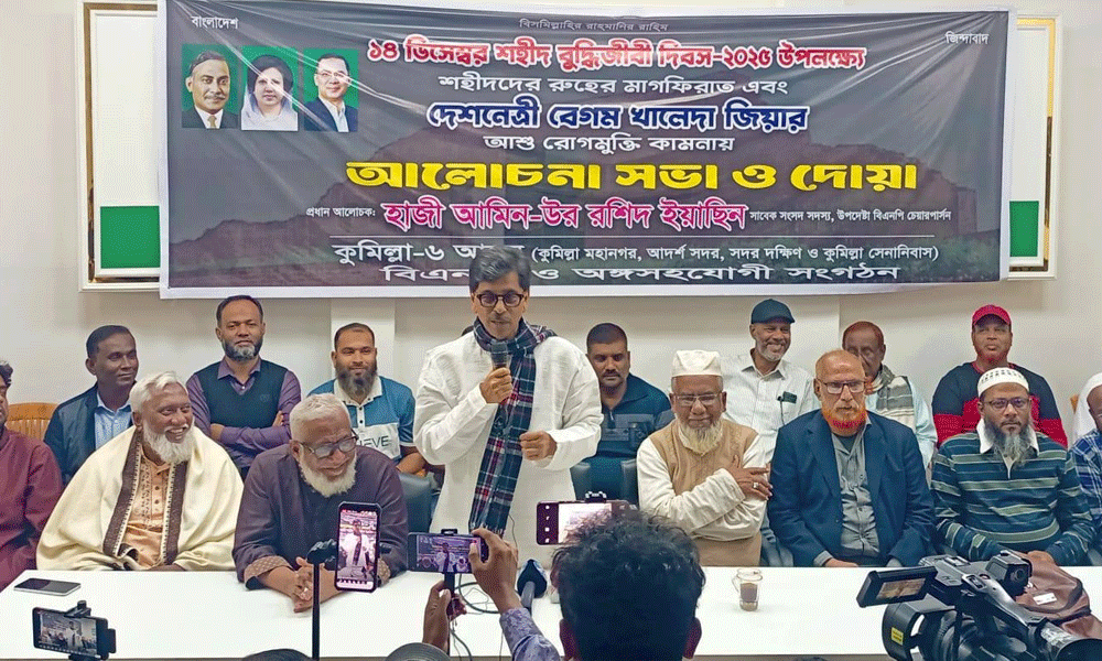 রবিবার (১৪ ডিসেম্বর) বিকেলে কুমিল্লা নগরীর কান্দিরপাড়ে দলীয় কার্যালয়ে বিএনপির উদ্যোগে শহীদ বুদ্ধিজীবী দিবস উপলক্ষে ও বেগম খালেদা জিয়ার রোগমুক্তি কামনায় আলোচনা সভা ও দোয়ার অনুষ্ঠানে প্রধান আলোচক হিসেবে তিনি এসব কথা বলেন।