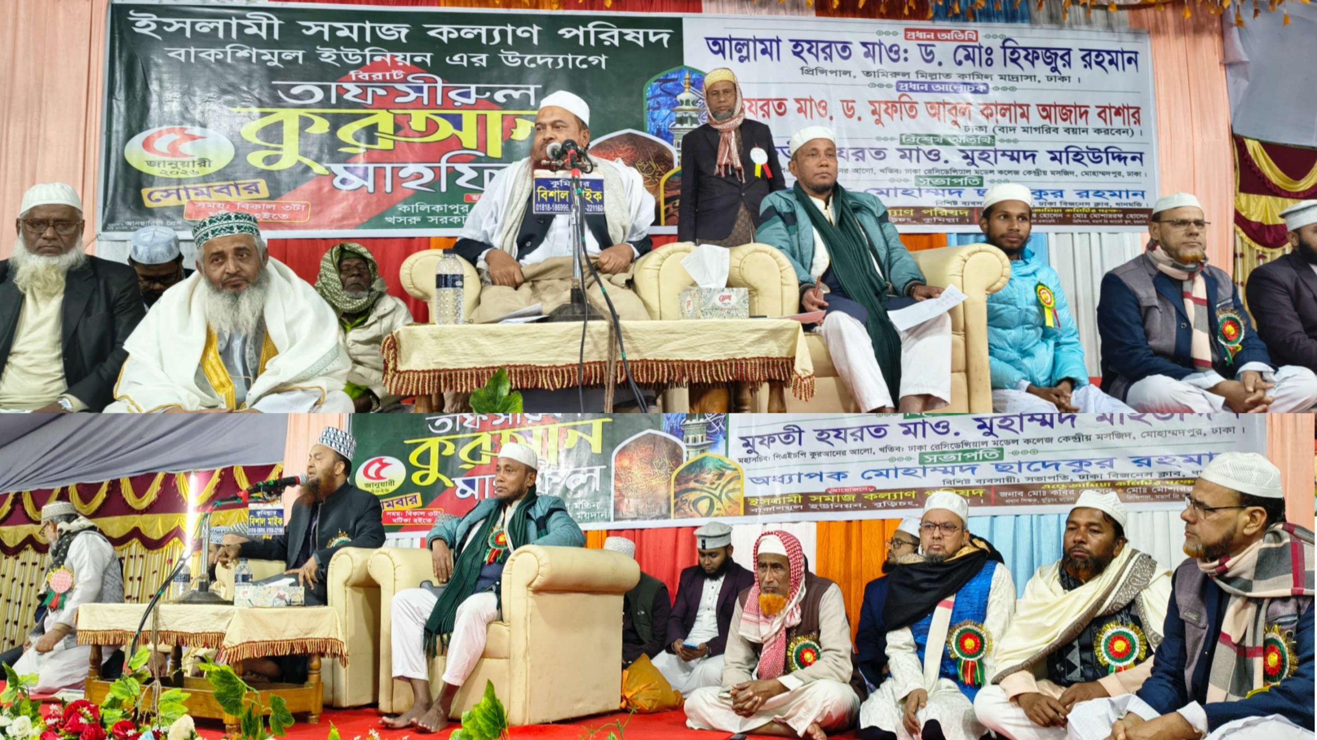 কুমিল্লার বুড়িচং উপজেলার কালিকাপুর আব্দুল মতিন খসরু সরকারি কলেজ মাঠে বাকশীমূল ইউনিয়ন ইসলামী সমাজ কল্যাণ পরিষদ উদ্যোগে এক তাফসিরুল কোরআন মাহফিল অনুষ্ঠিত হয়েছে।
