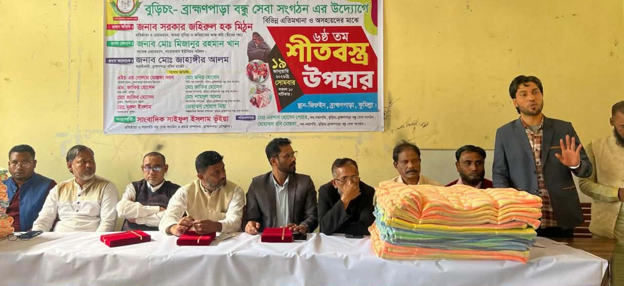 শীতার্ত ও অসহায় মানুষের পাশে দাঁড়িয়েছে বুড়িচং-ব্রাহ্মণপাড়া বন্ধুসেবা সংগঠন। প্রতিবছরের ন্যায় এ বছরও সংগঠনের উদ্যোগে প্রায় ৩০০টি হতদরিদ্র ও অসহায় পরিবারের মাঝে শীতবস্ত্র বিতরণ করা হয়েছে।