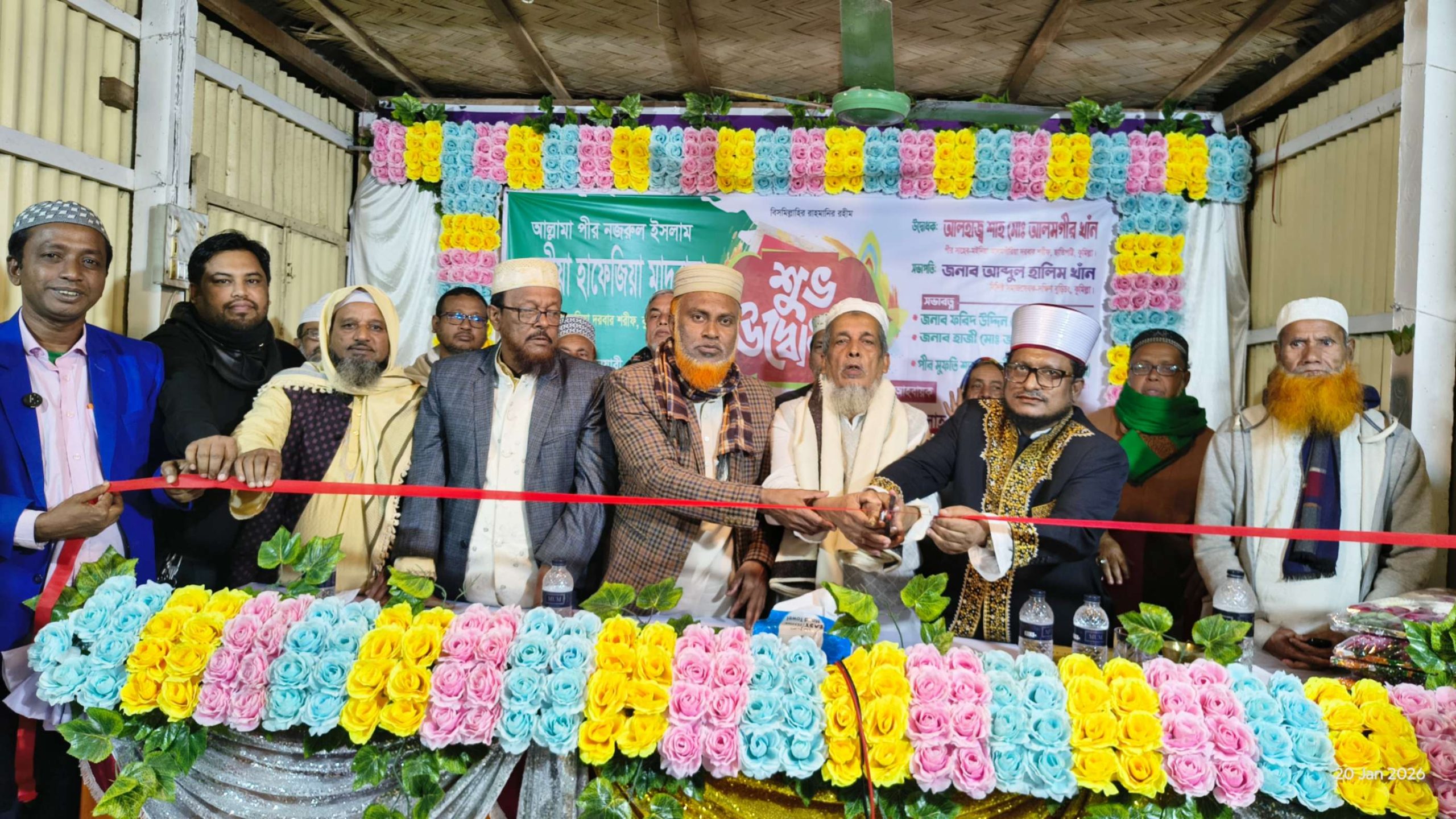 অনুষ্ঠানের মাঝামাঝি সময়ে ফিতা কেটে আল্লামা পীর নজরুল ইসলাম সুন্নিয়া হাফেজিয়া মাদ্রাসার শুভ উদ্বোধন করেন আমন্ত্রিত অতিথিবৃন্দ, দরবার শরীফের গদ্দিনিশিন ও খলিফাবৃন্দ। এ সময় আহলে সুন্নাত ওয়াল জামাত, বাংলাদেশ ইসলামী ফ্রন্ট ও বাংলাদেশ সুপ্রিম পার্টির বিভিন্ন পর্যায়ের নেতৃবৃন্দ উপস্থিত ছিলেন।