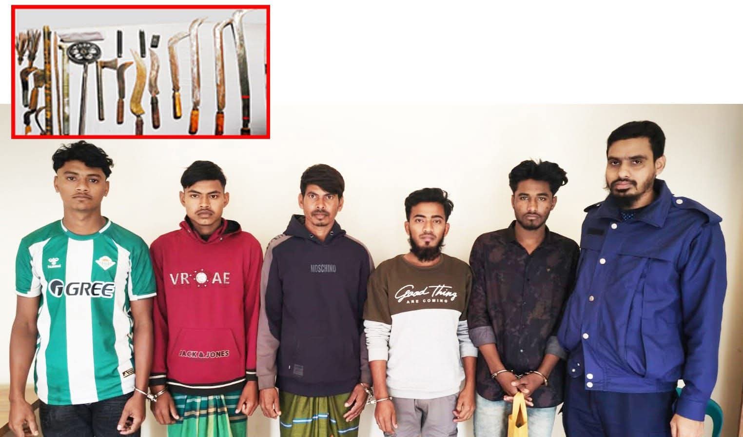 আটকদের দেওয়া তথ্য অনুযায়ী, জামাল মিয়ার বসতঘরের পাশে একটি গোয়াল ঘরে লুকানো বিপুল দেশীয় অস্ত্র উদ্ধার করা হয়। জব্দকৃত অস্ত্রের মধ্যে রয়েছে রামদা, ছুরি, চাইনিজ কুড়াল, লোহার শাবল, লোহার পাইপ, চেইন হুইল এবং একটি ইলেকট্রিক শক দেওয়ার যন্ত্র।
