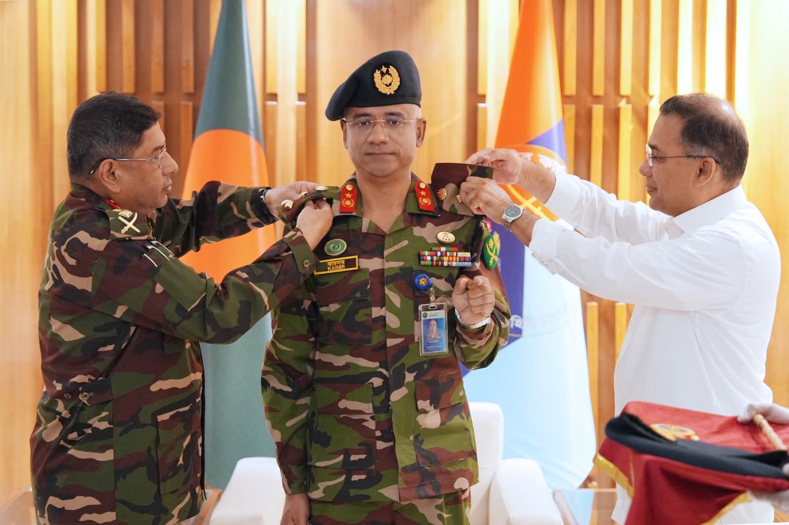 প্রধানমন্ত্রী তারেক রহমান এবং সেনাবাহিনী প্রধান ওয়াকার-উজ-জামান প্রতিরক্ষা গোয়েন্দা মহাপরিদপ্তরের (ডিজিএফআই) নবনিযুক্ত মহাপরিচালক ব্রিগেডিয়ার জেনারেল মোহাম্মদ কায়সার রশিদ চৌধুরীকে মেজর জেনারেল পদমর্যাদার র্যাংক ব্যাজ পরিয়ে দিয়েছেন।