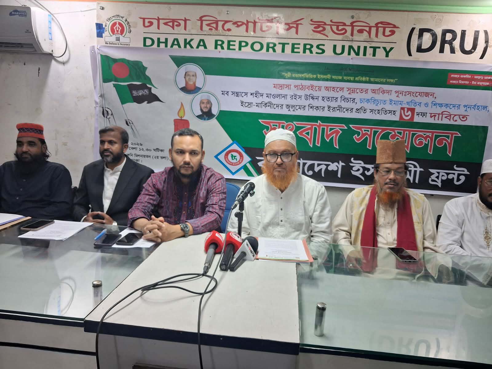 “আহলে সুন্নাতের আকিদা পুন:সংযোজন, মব সন্ত্রাসে নিহত মাওলানা রইস উদ্দিন হত্যার বিচার ও চাকরিচ্যুত ইমাম-খতিবদের পুনর্বহালের দাবি” মাদ্রাসা পাঠ্যবইয়ে আহলে সুন্নাত ওয়াল জামাআতের আকিদা পুনঃসংযোজন, মব সন্ত্রাসে নিহত আলেমে দ্বীন মাওলানা রইস উদ্দিন হত্যার বিচার, চাকরিচ্যুত ইমাম-খতিবদের পুনর্বহালসহ ৬ দফা দাবিতে সংবাদ সম্মেলন করেছে বাংলাদেশ ইসলামী ফ্রন্ট।