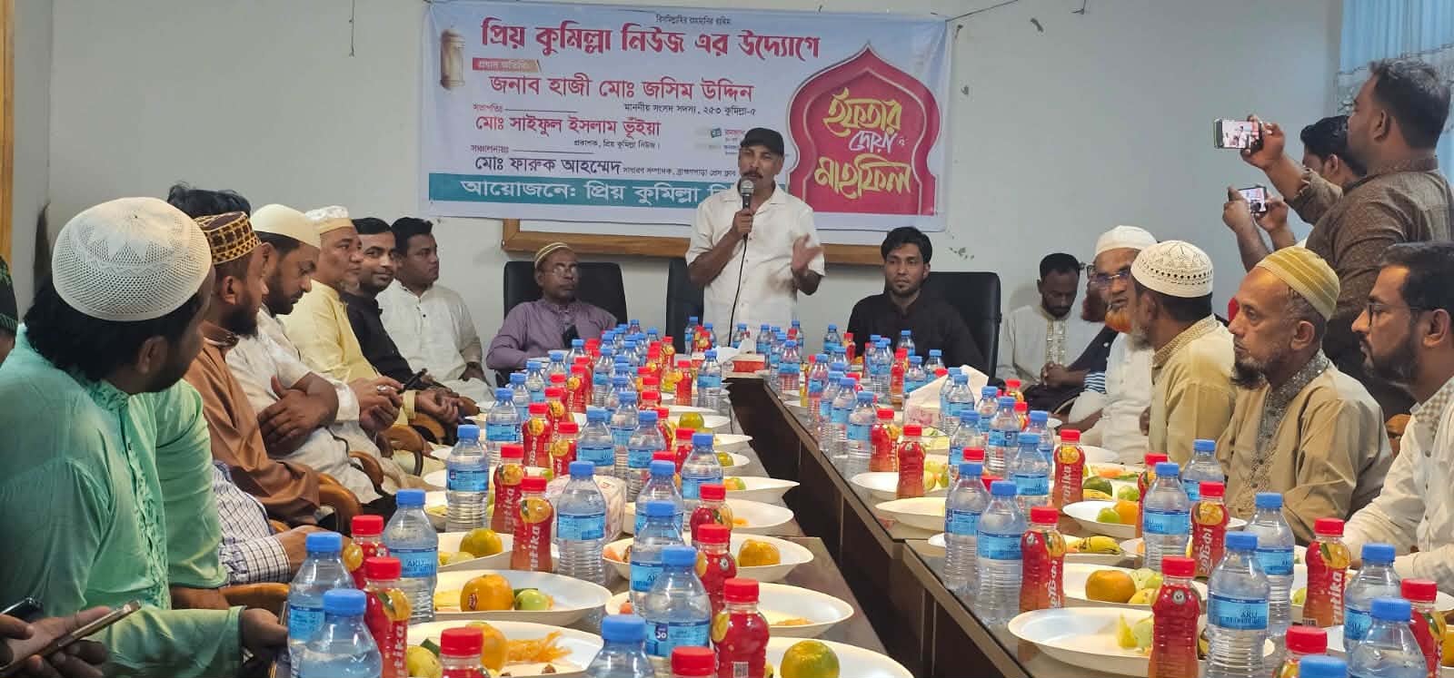 প্রিয় কুমিল্লা’র প্রকাশক ও ব্রাহ্মণপাড়া প্রেসক্লাবের সহ-সাংগঠনিক সম্পাদক সাংবাদিক সাইফুল ইসলাম ভূইয়ার সভাপতিত্বে এবং ব্রাহ্মণপাড়া প্রেসক্লাবের সাধারণ সম্পাদক ফারুক আহাম্মদের সঞ্চালনায় অনুষ্ঠানে প্রধান অতিথি হিসেবে উপস্থিত ছিলেন উপজেলা বিএনপির সাংগঠনিক সম্পাদক মো. শাহজাহান সাজু।
