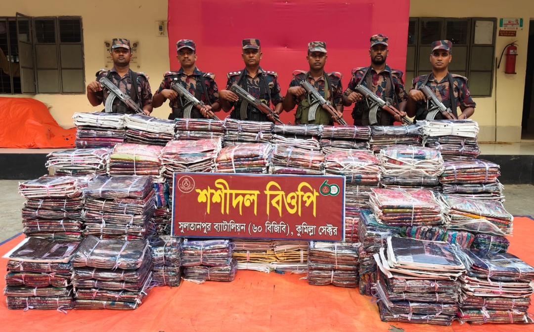অভিযানে ভারতীয় উন্নতমানের বিপুল পরিমাণ শাড়ি জব্দ করা হয়, যার আনুমানিক বাজারমূল্য ৮৪ লাখ ৫৭ হাজার ৫০০ টাকা।