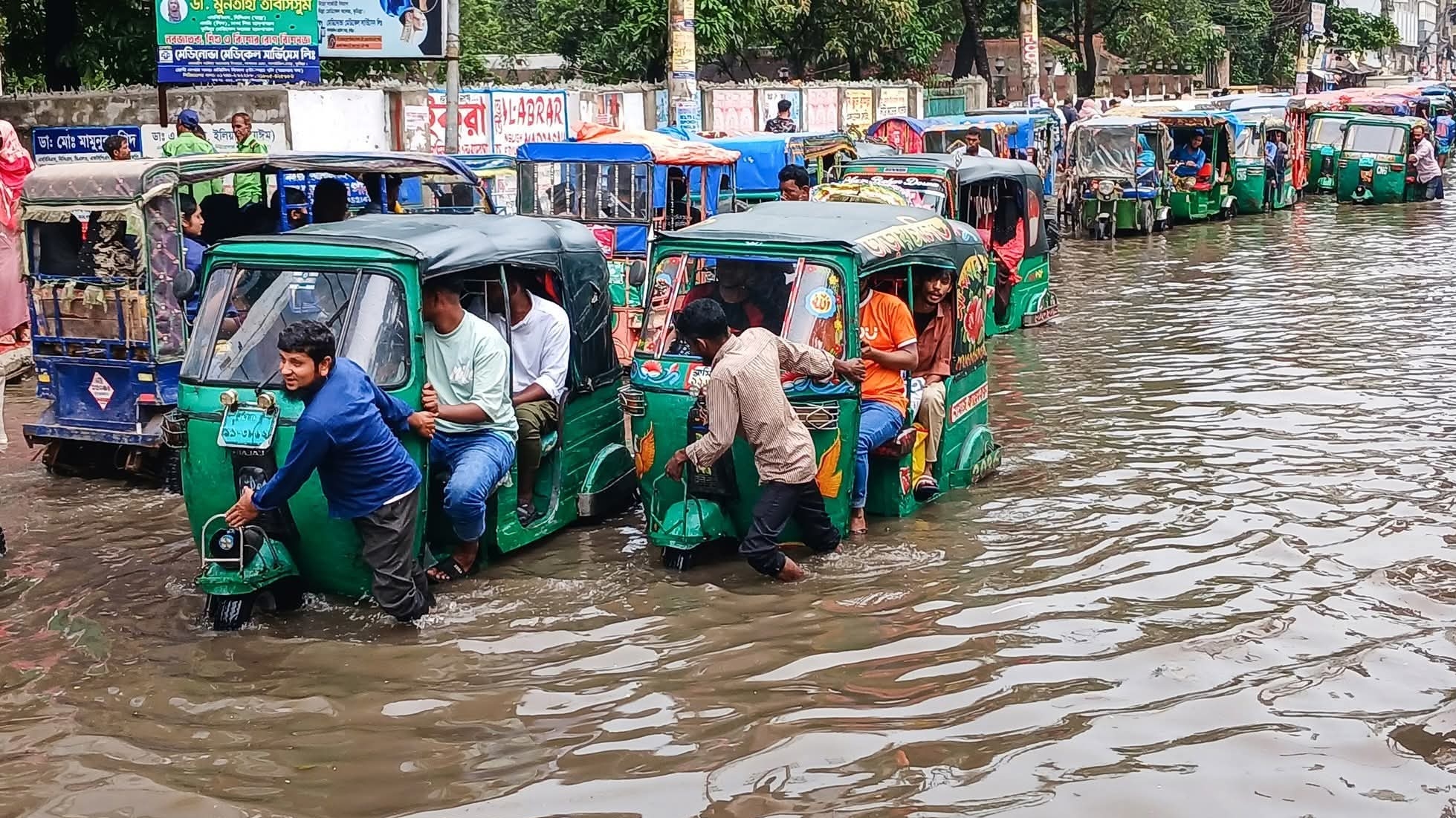 সরেজমিনে দেখা যায়, পানির মধ্যে এক হাতে কাপড় আঁকড়ে অন্য হাতে শিশু কোলে নিয়ে চলছেন এক মা। কোথাও ইঞ্জিন বিকল হয়ে পড়া গাড়ি ঠেলে নিয়ে যাচ্ছেন চালক, আবার কোথাও উঁচু স্থানে দাঁড়িয়ে যাত্রীরা অপেক্ষা করছেন যানবাহনের আশায়। যানবাহন না পেয়ে এক বাবা নবজাতক শিশুকে কোলে নিয়ে ময়লা ড্রেনের পানি ঠেলে হাঁটছেন, তার পেছনে সিজারিয়ান অপারেশন করা মা কষ্টে পথ পাড়ি দিচ্ছেন। ভেজা পোশাকে বাসায় ফিরতে দেখা গেছে স্কুল-কলেজের শিক্ষার্থীদের।