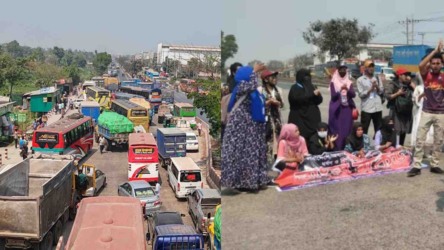 সারাদেশে একের পর এক ধর্ষন ও নিপীড়নের প্রতিবাদে বাংলা ব্লকেড কর্মসূচি ও ঢাকা-চট্টগ্রাম মহাসড়ক অবরোধ করা হয়েছে। সোমবার (১০ মার্চ) কুমিল্লা কোটবাড়ি বিশ্বরোড এলাকায় ‘ধর্ষণ ও নিপীড়নের বিরুদ্ধে কুমিল্লা’ ব্যানারে সকাল ১১ টা থেকে এই কর্মসূচি পালিত হয়। কুমিল্লা মর্ডান হাই স্কুল,কুমিল্লা সরকারি কলেজ, কুমিল্লা মহিলা কলেজ, কুমিল্লা ভিক্টোরিয়া সরকারি কলেজসহ বিভিন্ন স্কুল-কলেজের শিক্ষার্থীরা এই কর্মসূচিতে অংশ নেন। এসময়, শিক্ষার্থীরা ঢাকা-চট্টগ্রাম মহাসড়কের দুই পাশে অবস্থান করে সড়ক অবরোধ করে। এতে যানবাহনের দীর্ঘ সারি তৈরী হয় মহাসড়কে। এ সময় শিক্ষার্থীরা, “আমি কে তুমি কে আছিয়া,আছিয়া” ‘একটা একটা ধর্ষক ধর, ধইরা ধইরা জবাই কর’,‘ধর্ষকের সাজা একটাই মৃত্যু ছাড়া কথা নাই’, ‘ডিজিটাল বাংলাদেশ চাই না, নিরাপদ বাংলাদেশ চাই’, ‘ধর্ষক সমাজের ঘুন পোকা আর ধর্ষণ হলো ব্যাধি’, ধর্ষকের ঠাঁই নাই আমার সোনার বাংলায়’সহ বিভিন্ন স্লোগানে মুখরিত করে তুলে। এসময় একাধিক শিক্ষার্থীর কাছে জানতে চাইলে তারা বলেন, আমরা বৈষম্যমুক্ত বাংলাদেশের বিরুদ্ধে পূর্বে লড়াই করেছি। কিন্তু এখন নিরাপদ বাংলাদেশ চাই আমরা। যেখানে নারী, শিশুরা নিরাপদে থাকবে। ধর্ষকদেরকে অতি দ্রুত ধরে বিচারের আওতায় নিয়ে আসতে হবে। আমার সোনার বাংলায় আর কোনো মা-বোন যাতে ধর্ষণের শিকার না হয়, নিপীড়নের শিকার না হয়। আমরা মেয়েরা নিরাপদ নই এখনো। ১৮ই আগষ্টে কোটবাড়িতে আমরা মেয়েরাও আন্দোলন করেছিলাম। এখন অন্তর্বর্তীকালীম সরকার আসার পর আমরা মেয়েরা কেন নিরাপদ নই। আমরা ২৪ ঘণ্টার মধ্যে ধর্ষকদের বিচার নিশ্চিত দেখতে চাই। এদিকে, প্রায় দুইঘণ্টা লাগাতার অবরোধের পর শিক্ষার্থীরা মহাসড়ক ত্যাগ করে৷ এতে ঢাকা চট্টগ্রাম মহাসড়কের পাশে প্রায় ১০ কিলোমিটার এলাকা জুড়ে যানজটের সৃষ্টি হয়। ভোগান্তিতে পড়ে যাত্রীরা। পরে, অবরোধ শেষে যান চলাচল স্বাভাবিক হয়। এই বিষয়ে, ময়নামতি হাইওয়ে অফিসার ইনচার্জ ইকবাল বাহার বলেন, দীর্ঘ ২ ঘণ্টা পর ঢাকা-চট্টগ্রাম মহাসড়কে যান চলাচল স্বাভাবিক হয়েছে। সদর দক্ষিণ উপজেলা ভূমি কর্মকর্তা সৈয়দ রেফাঈ আবিদ বলেন, আঁছিয়া কে ধর্ষণের প্রতিবাদে ব্লকেড কর্মসূচি পালন করেছে শিক্ষার্থীরা। আমরা সেখানে গিয়ে পরিস্থিতি শান্ত রাখার চেষ্টা করেছি। প্রায় ২ ঘণ্টা পর শিক্ষার্থীরা অবরোধ সমাপ্তি ঘোষণা করে। যান চলাচল স্বাভাবিক রয়েছে।