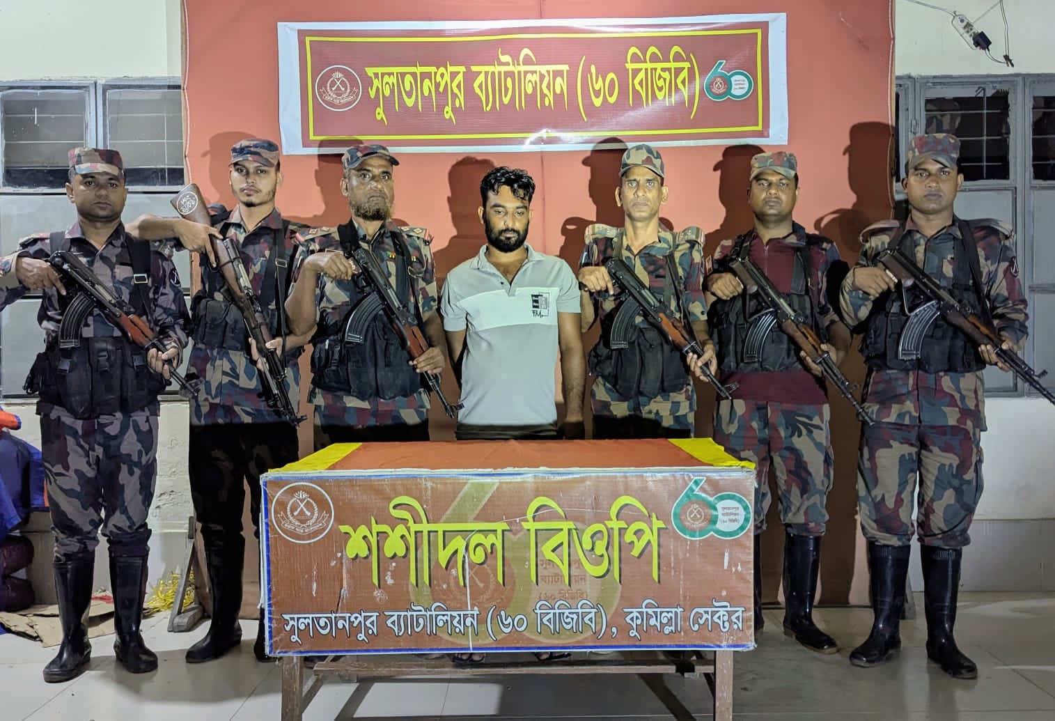 কুমিল্লার ব্রাহ্মণপাড়া সীমান্ত দিয়ে অবৈধভাবে বাংলাদেশে প্রবেশের সময় এক ভারতীয় যুবককে আটক করেছে বর্ডার গার্ড বাংলাদেশ (বিজিবি)। মঙ্গলবার রাতে বিষয়টি নিশ্চিত করেছেন শশীদল বিওপির ক্যাম্প কমান্ডার নায়েব সুবেদার আবু বক্কর। আটক যুবকের নাম রবিন হোসেন (২৫)। তিনি ভারতের ত্রিপুরা রাজ্যের সিপাহীজলা জেলার বক্সনগর থানা এলাকার গৌরাঙ্গলা গ্রামের আব্দুল সালামের ছেলে। বিজিবি সূত্রে জানা যায়, সুলতানপুর ৬০ বিজিবির শশীদল বিওপির একটি বিশেষ টহলদল গোপন সংবাদের ভিত্তিতে অভিযান চালায়। নায়েব সুবেদার আবু বক্করের নেতৃত্বে সোমবার রাত ৯টার দিকে টহলে বের হয় দলটি। রাত সাড়ে ১০টার দিকে মেইন পিলার ২০৫৮/৬-এস থেকে প্রায় ৩৫০ গজ ভেতরে নারায়ণপুর মাজারের সামনে থেকে রবিন হোসেনকে আটক করা হয়। সে সময় বৈধ পাসপোর্ট বা ভ্রমণসংক্রান্ত কোনো নথি তিনি দেখাতে পারেননি। শশীদল বিওপির বিজিবি ক্যাম্প কমান্ডার নায়েব সুবেদার আবু বক্কর জানান, আটক ব্যক্তির বিরুদ্ধে বাংলাদেশ (কন্ট্রোল অব এন্ট্রি) অ্যাক্ট ১৯৫২–এর ৪ ধারায় মামলা দায়ের করা হয়েছে। পরে মঙ্গলবার সকালে তাকে থানায় হস্তান্তর করা হয়।পরে থানা পুলিশ আদালতের মাধ্যমে জেল হাজতে প্রেরণ করেন।