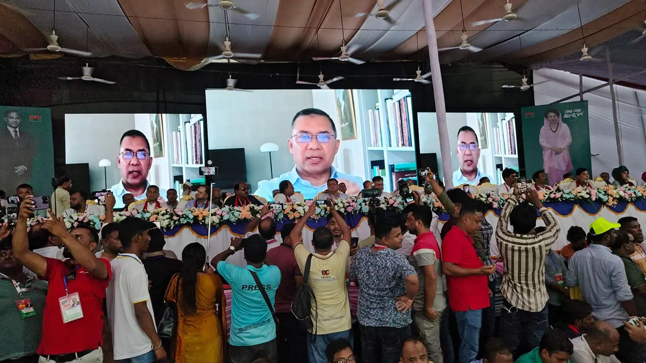 বিএনপির ভারপ্রাপ্ত চেয়ারম্যান তারেক রহমান বলেছেন, ২০০৮ সালের তথাকথিত নির্বাচনের মাধ্যমে এবং ওয়ান ইলেভেনের মাধ্যমে স্বৈরাচার জেঁকে বসেছিল। আমরা গণতান্ত্রিক শক্তিগুলো যদি ঐক্যবদ্ধ না হই আগামী দিনে গুপ্ত স্বৈরাচারের আবির্ভাব হতে পারে। জনগণ যেভাবে চায়, আমাদের সেভাবে চলতে হবে। একটি কথা, সবার আগে বাংলাদেশ। এটিই আমাদের শুরু, এটাই আমাদের শেষ, সবার আগে বাংলাদেশ। শনিবার (২৭ সেপ্টেম্বর) বিকেলে কুমিল্লা টাউনহল মাঠে কুমিল্লা দক্ষিণ বিএনপির সম্মেলনে প্রধান অতিথির বক্তব্যে ভার্চুয়ালি তিনি এসব কথা বলেন।এদিন ১৬ বছর পর কুমিল্লা দক্ষিণ জেলা বিএনপির সম্মেলন অনুষ্ঠিত হয়। অনুষ্ঠানে প্রধান বক্তা ছিলেন বিএনপির স্থায়ী কমিটির সদস্য সালাউদ্দিন আহমেদ। অনুষ্ঠান উদ্বোধন করেন বিএনপির জাতীয় নির্বাহী কমিটির ভাইস চেয়ারম্যান বরকত উল্লাহ বুলু। বিশেষ অতিথি ছিলেন বিএনপির চেয়ারপারসনের উপদেষ্টা কাউন্সিলের সদস্য মনিরুল হক চৌধুরী ও আমিন উর রশিদ ইয়াছিন, সাংগঠনিক সম্পাদক অধ্যক্ষ সেলিম ভূঁইয়া, শিল্প বিষয়ক সম্পাদক মো. আবুল কালাম, সহ-সাংগঠনিক সম্পাদক মো. মোস্তাক মিয়া। সম্মেলনে সভাপতিত্ব করেন কুমিল্লা দক্ষিণ জেলা বিএনপির আহ্বায়ক জাকারিয়া তাহের সুমন। সঞ্চালনা করেন কুমিল্লা দক্ষিণ জেলা বিএনপির সদস্য সচিব আশিকুর রহমান মাহমুদ ভিপি ওয়াসিম। এ সময় তারেক রহমান বলেন, বক্তব্য অনেক হয়েছে। এখন আমাদের কাজ করতে হবে। আজকে সম্মেলনের স্লোগান হোক, ঐক্য, জনগণ এবং পুনর্গঠন। আমাদের নেতাকর্মীরা হাজার হাজার জনগণকে নিয়ে আন্দোলন করছে। জেলে গিয়েছে, গুম হয়েছে। স্বৈরাচারের পতন হয়েছে। সবাইকে ঐক্যবদ্ধ হয়ে এগিয়ে যেতে হবে। এখনই সময়, সবাই মিলে কাজ করে সুন্দর ঘর গঠন করি। সবাই মিলে সুন্দর ঘর নির্মাণ করতে হবে। এই বাংলাদেশকে গঠন করতে হবে। জনগণের কাছে যেতে হবে। মিটিং করে জনগণের কাছে যাওয়া যাবে না। প্রতিটি ঘরে ঘরে যেতে হবে। কীভাবে মানুষের পাশে দাঁড়াতে হবে, তা সকল জনগণের কাছে পৌঁছে দিতে হবে।