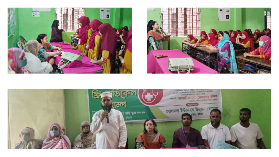 কুমিল্লার বুড়িচং উপজেলার ষোলনল ইউনিয়ন উন্নয়ন ফোরামের উদ্যোগে স্কুলের ২ শতাধিক শিক্ষার্থী ও অভিভাবককে ফ্রি চিকিৎসা সেবা প্রদান করা হয়েছে। রোববার (২৮ সেপ্টেম্বর) দিনব্যাপী এ ফ্রি চিকিৎসা সেবা প্রদান করা হয় ভরাসার ইঞ্জি. এরশাদ গার্লস হাই স্কুল মিলনায়তনে। এতে বিদ্যালয়ের শিক্ষার্থী, শিক্ষিকা ও স্থানীয় নারীরা চিকিৎসা ও প্রয়োজনীয় ওষুধ গ্রহণ করেন। ফ্রি চিকিৎসা সেবা কার্যক্রমে সহযোগিতা করেন সংগঠনের আহ্বায়ক সাংবাদিক মো. মোসলেহ উদ্দিন। চিকিৎসা প্রদান করেন ডা. কাজী ইসরাত জাহান, এমবিবিএস, বিসিএস (স্বাস্থ্য), এফসিপিএস (সার্জারি), এফএসিএস (আমেরিকা), জেনারেল ও অনকোপ্লাস্টিক ব্রেস্ট সার্জারি বিশেষজ্ঞ। অনুষ্ঠানে উপস্থিত ছিলেন ইঞ্জি. এরশাদ গার্লস হাই স্কুলের প্রধান শিক্ষক এনামুল হক সোহেল, ভরাসার সরকারি প্রাথমিক বিদ্যালয়ের প্রধান শিক্ষক জহুরুম মেধা খানম, বিশিষ্ট সমাজসেবক হারুন অর রশিদ ও সংগঠনের সদস্য আফতাফুল ইসলাম। সঞ্চালনায় ছিলেন বিদ্যালয়ের সহকারী শিক্ষক ওমর ফারুক ছায়েম। আয়োজকরা জানান, শিক্ষার্থীসহ প্রায় ২ শতাধিক রোগীর চিকিৎসা ও বিনামূল্যে ওষুধ সরবরাহ করা হয়েছে।