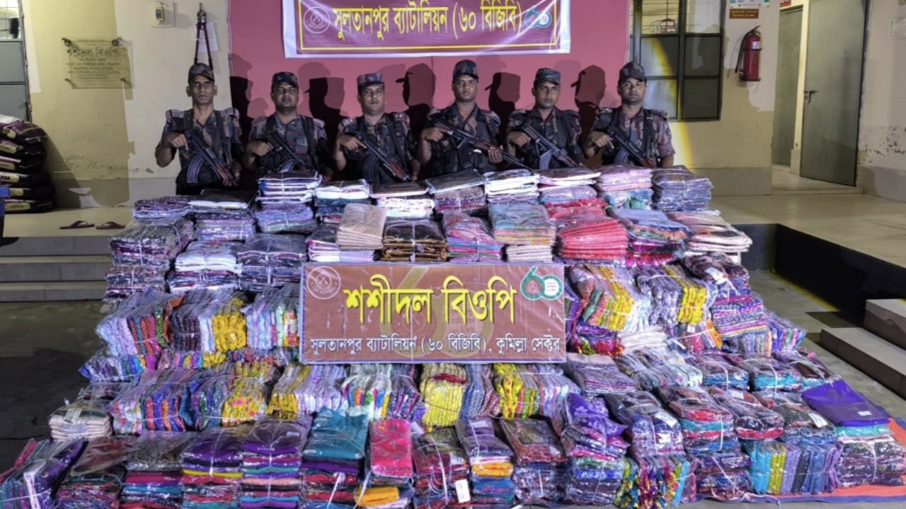 সীমান্তে চোরাচালান প্রতিরোধে বিশেষ অভিযানে কুমিল্লা ও ব্রাহ্মণবাড়িয়া সীমান্ত এলাকা থেকে প্রায় ২ কোটি ১১ লক্ষ ৫ হাজার টাকা মূল্যের ভারতীয় অবৈধ পণ্য জব্দ করেছে সুলতানপুর ব্যাটালিয়ন (৬০ বিজিবি)। শুক্রবার রাত ১০ টার দিকে এ বিষয়টি নিশ্চিত করেছেন সুলতানপুর ব্যাটালিয়নের অধিনায়ক লেঃ কর্নেল মোঃ জিয়াউর রহমান। (১৭ অক্টোবর ২০২৫) শুক্রবার সুলতানপুর ব্যাটালিয়নের অধীনস্থ দায়িত্বপূর্ণ এলাকার ব্রাহ্মণবাড়িয়া জেলার কসবা ও কুমিল্লা জেলার ব্রাহ্মণপাড়া উপজেলার সীমান্তবর্তী এলাকায় এই বিশেষ অভিযান পরিচালিত হয়। অভিযানে প্রায় ১ কোটি ৭০ লক্ষ টাকা মূল্যের ভারতীয় উন্নত মানের শাড়ি এবং ৪০ লক্ষ ৯৫ হাজার টাকা মূল্যের ১টি পিকআপসহ ভারতীয় বাসমতি চাল জব্দ করা হয়। সুলতানপুর ব্যাটালিয়নের অধিনায়ক লেঃ কর্নেল মোঃ জিয়াউর রহমান, পিবিজিএম, বিজিবিএমএস, এএসসি বলেন,“সীমান্তে নিরাপত্তা রক্ষা ও চোরাচালান প্রতিরোধে ৬০ বিজিবির আভিযানিক কার্যক্রম ও গোয়েন্দা তৎপরতা সর্বোচ্চভাবে অব্যাহত রয়েছে। এরই ধারাবাহিকতায় সীমান্তবর্তী এলাকায় অভিযান চালিয়ে এসব অবৈধ ভারতীয় পণ্য জব্দ করা সম্ভব হয়েছে।” জব্দকৃত মালামাল পরবর্তী আইনানুগ ব্যবস্থা গ্রহণের জন্য সংশ্লিষ্ট কর্তৃপক্ষের নিকট হস্তান্তর করা হয়েছে বলে জানা গেছে।